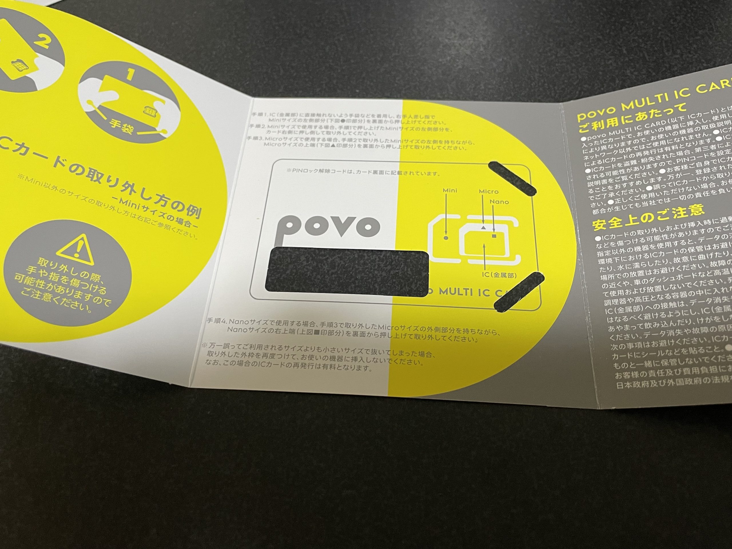 さらに封書を開けると、下のような説明書とSIMピン、SIMカードが入っています。