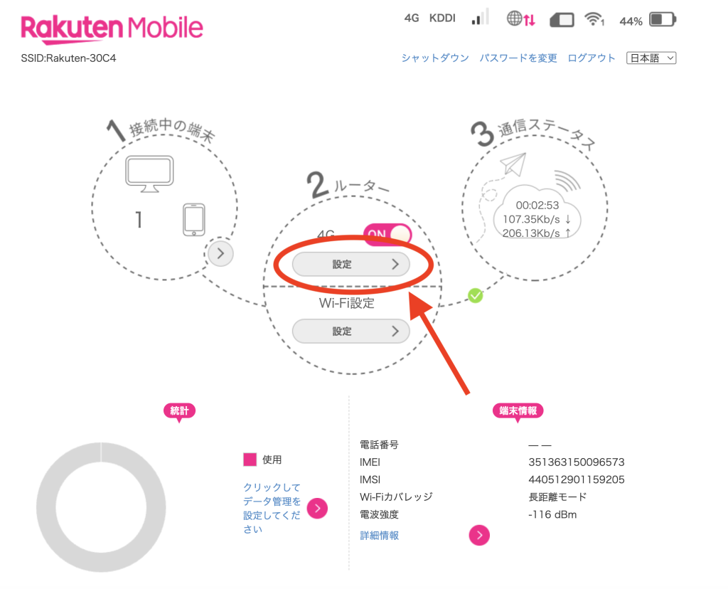 ④ポケット型WiFiにSIMカードを挿して接続設定